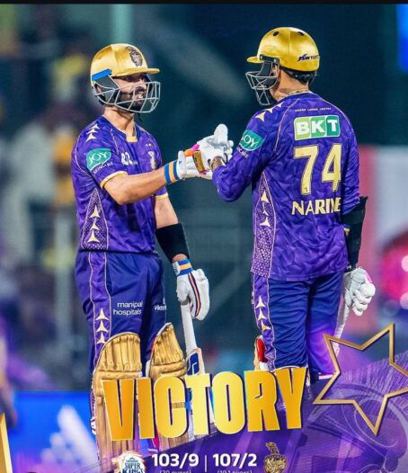 फर्स्ट इनिंग्स समाप्ति में चेन्नई के सुपर किंग ने कोलकाता नाइट राइडर्स के सामने मात्र 103 रंग का लक्ष्य रखा । जिसे कोलकाता नाइट राइडर्स ने बड़े ही आसानी से 10 ओवर 1 बाल में ही चेंज कर लिया । सुनील नारायण ने एक शानदार पारी खेलकर कोलकाता को बहुत ही जल्दी अपनी जीत की तरफ फेंका । तो वही चेन्नई की गेंदबाजों के पास मात्र दो विकेट मिले जिसमें नूर अहमद और कंबोज को एक-एक विकेट की प्राप्ति हुई ।